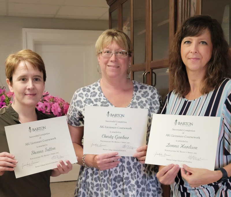 Sheena Sutton, Riverside Middle School Math Teacher; Christy Gardner, Jamesville Elementary School English /Language Arts Teacher and Donna Hardison, E.J. Hayes Elementary School Language Arts/ Social Studies Teacher, all successfully completed their coursework through Barton College.