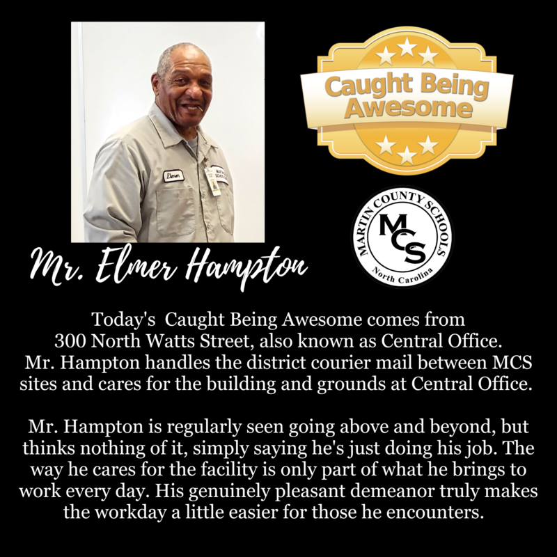 Today's edition of Caught Being Awesome highlights a very special man who gives others his all every single day. Meet Mr. Elmer Hampton!
