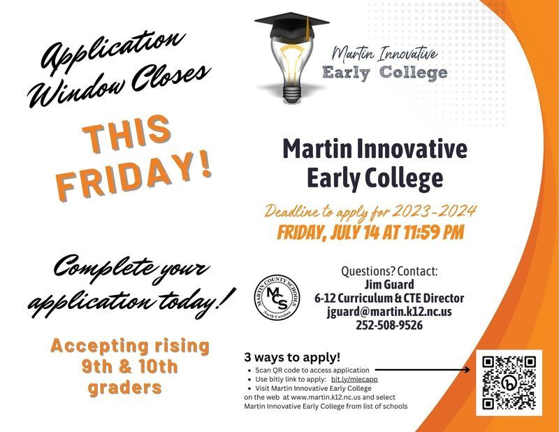 The deadline is fast approaching to get those applications in! The window closes this Friday!! If you have questions, please contact Mr. Jim Guard. Contact information is included on the flyer.